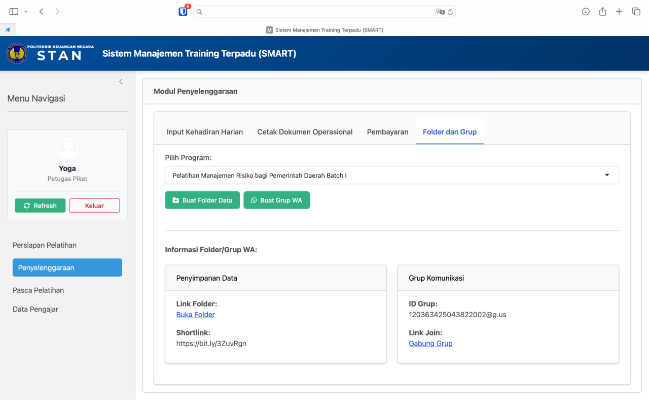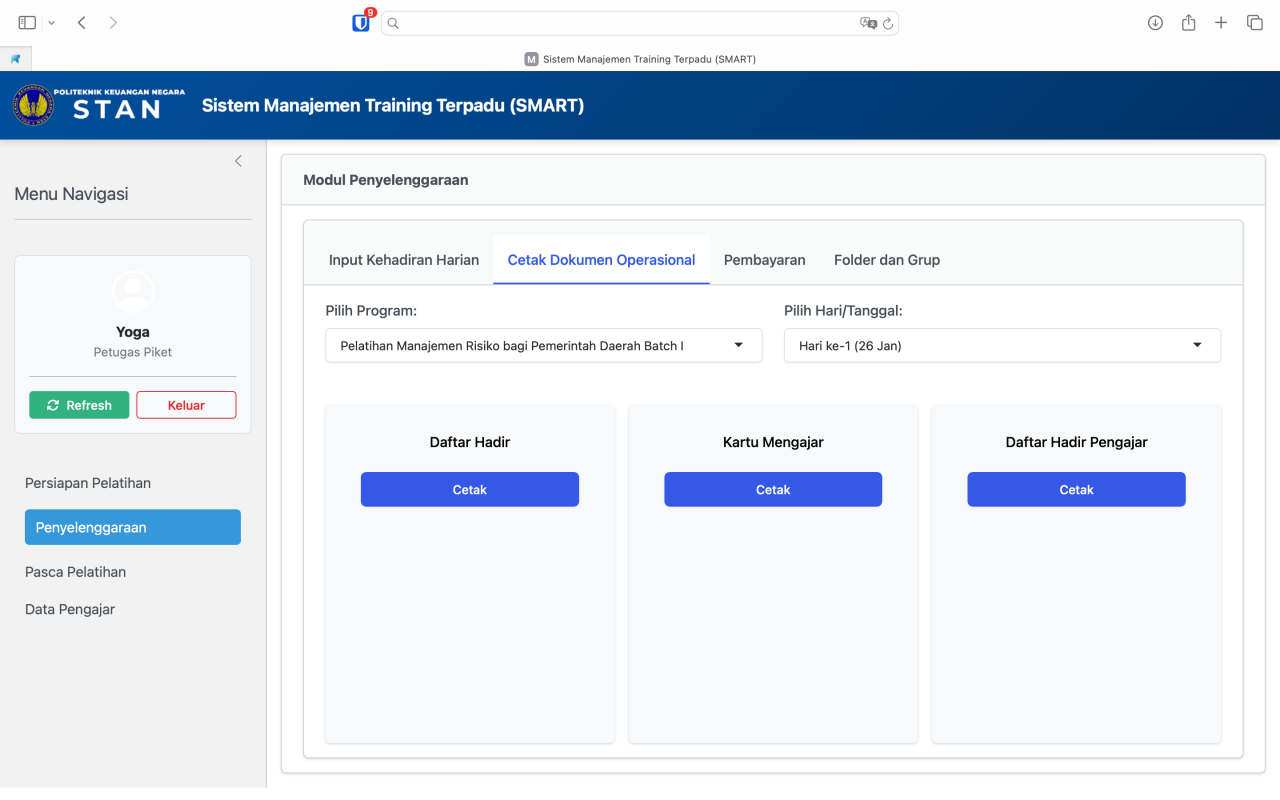 Modul Penyelenggaraan adalah pusat operasional harian saat program diklat sedang berlangsung.